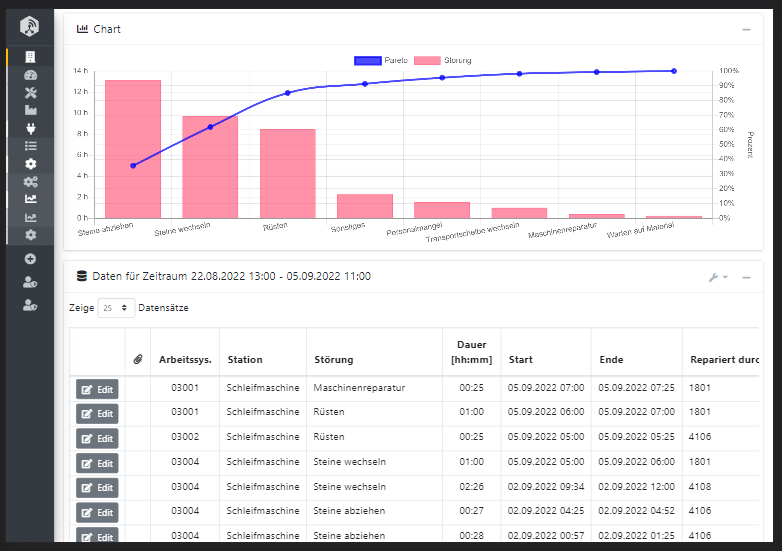 Datengrundlage für strategische Optimierung: Nutzen Sie die gesammelten Störungsdaten als Grundlage, um langfristig die Produktionsauslastung zu steigern und Ressourcen effizienter zu nutzen.